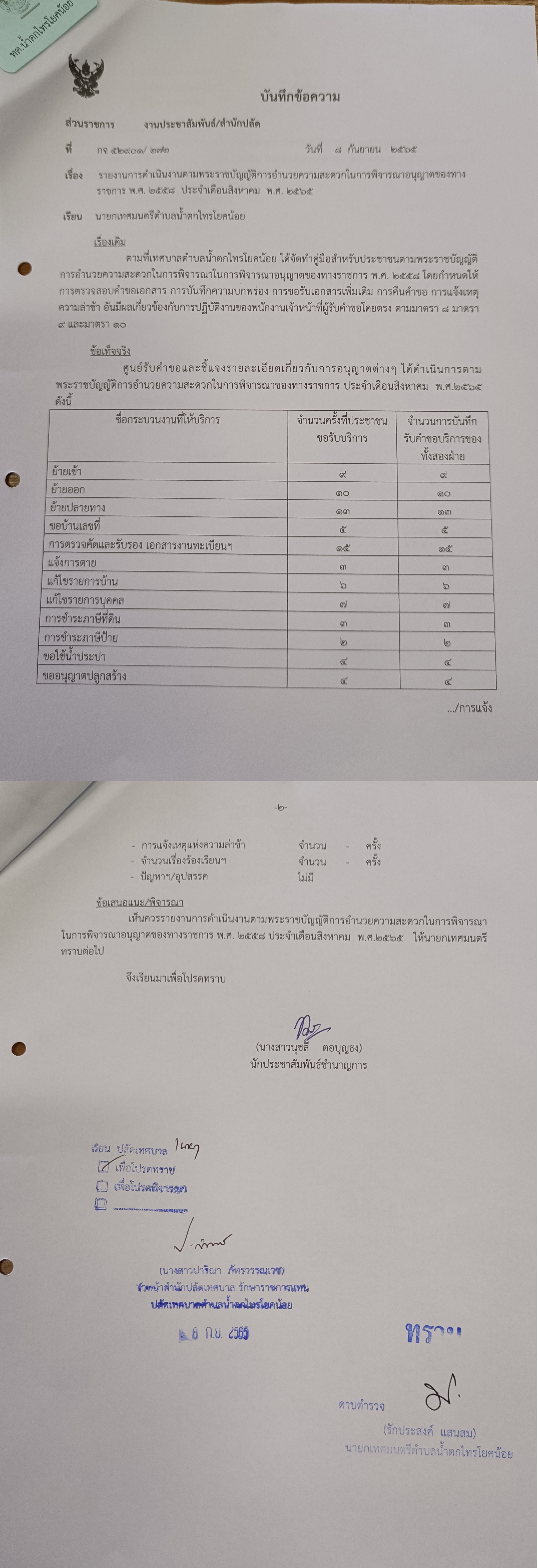 รายงานการดำเนินงานการขอรับบริการของประชาชน ประจำเดือน ส.ค. 65