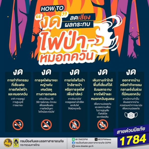 ขอแนะนำหลักปฏิบัติที่สำคัญเพื่อลดเสี่ยงจากผลกระทบที่เกิดขึ้นจากไฟป่าและหมอกควัน