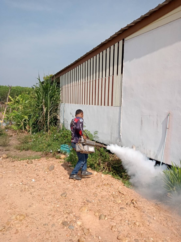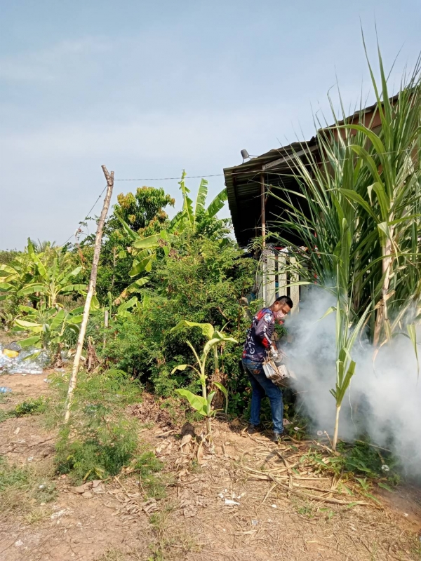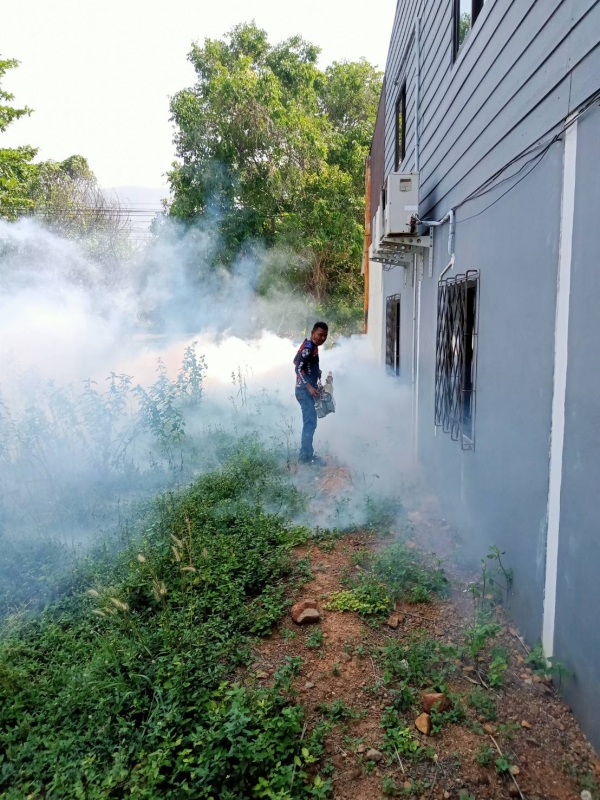 ลงพื้นที่ฉีดพ่นหมอกควันกำจัดยุงลายบริเวณชุมชนอนามัย