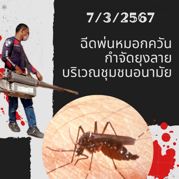 วันที่ 7 มีนาคม 2567 ตามที่รพ. สต.บ้านท่าเสา ได้แจ้งให้เทศบาลตำบลน้ำตกไทรโยคน้อย ออกควบคุมโรคไข้เลือดออก กรณี พบเคสโรคไข้เลือดออกในพื้นที่ นำโดยนางสาวปารีณา ภัทรวรรณ หัวหน้าสำนักปลัดเทศบาล พร้อมด้วยเจ้าหน้าที่งานสาธารณสุข ลงพื้นที่ฉีดพ่นหมอกควันกำจัดยุงลายบริเวณชุมชนอนามัย เพื่อกำจัดยุงลายที่เป็นพาหะนำโรคไข้เลือดออก