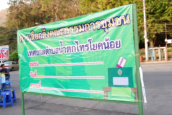 การประชุมคัดเลือกประธานชุมชนน้ำตก เมื่อวันที่ 1 กุมภาพันธ์ 2560 เวลา 18.00 น. ณ บริเวณลานหน้าน้ำตกไทรโยคน้อย