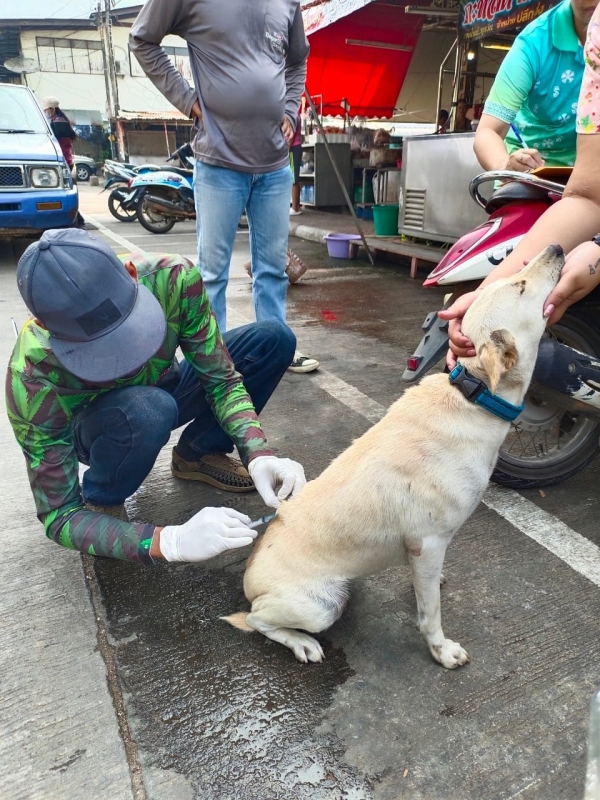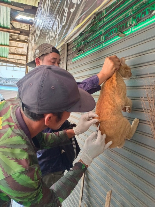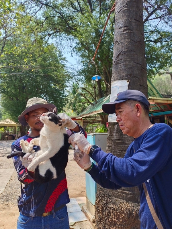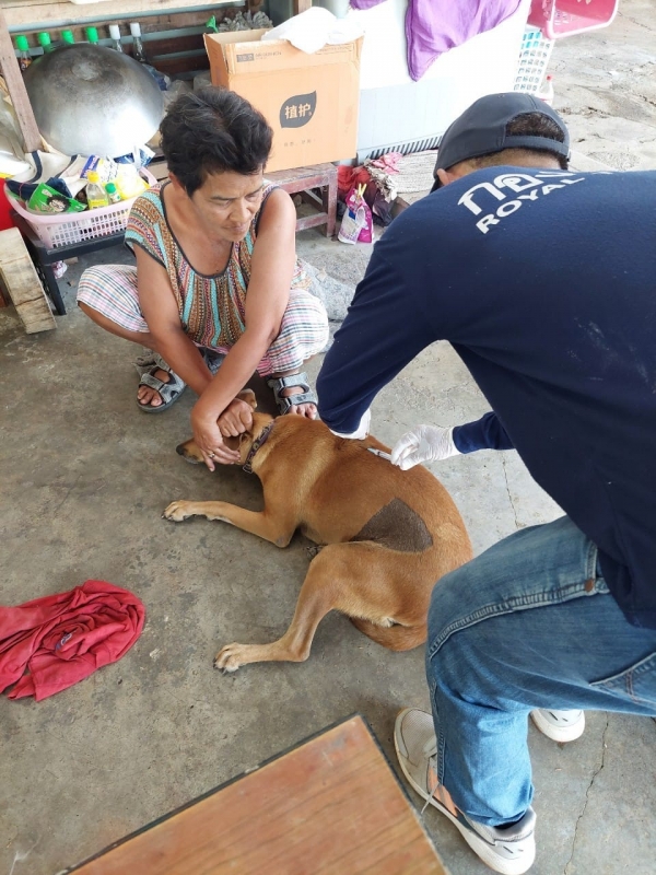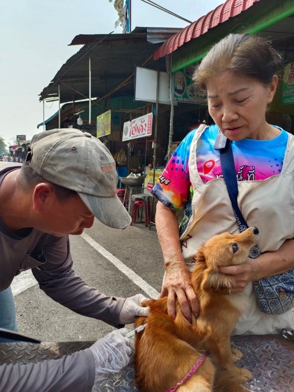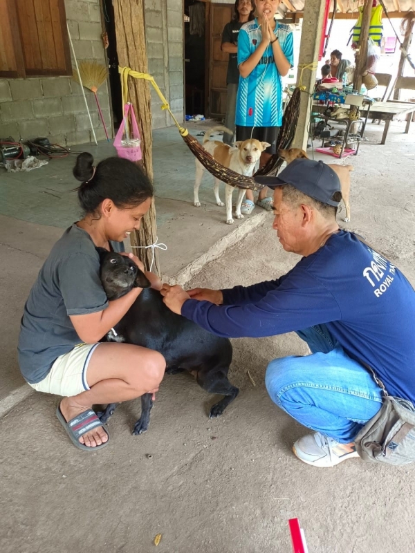ลงพื้นที่ฉีดวัคซีนป้องกันโรคพิษสุนัขบ้าให้กับสุนัขและแมว ในชุมชนทั้ง 6 ชุมชน
