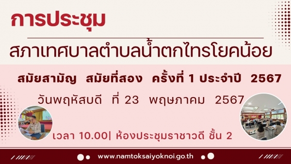 โดยมีดาบตำรวจรักประสงค์ แสนสม นายกเทศมนตรีตำบลน้ำตกไทรโยคน้อย พร้อมด้วย คณะผู้บริหาร สมาชิกสภาเทศบาล หัวหน้าส่วนราชการ เข้าร่วมประชุมดังกล่าว ณ ห้องประชุมสภาเทศบาลตำบลน้ำตกไทรโยคน้อย
