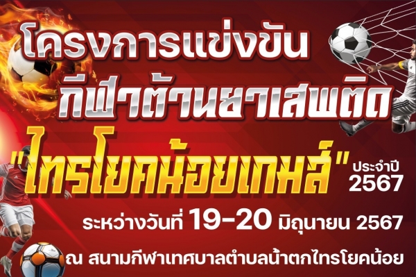 เทศบาลตำบลน้ำตกไทรโยคน้อย ขอเชิญร่วมชมและเชียร์ การแข่งขันกีฬา โครงการกีฬาต้านยาเสพติด ประจำปี 2567 "ไทรโยคน้อยเกมส์" ประจำปี 2567 ระหว่างวันที่ 19-20 มิถุนายน 2567 ณ สนามกีฬาเทศบาลตำบลน้ำตกไทรโยคน้อย