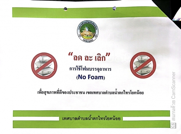 เทศบาลตำบลน้ำตกไทรโยคน้อย ขอเชิญร่วมรณรงค์กิจกรรม ลด ละ เลิก การใช้ภาชนะโฟมบรรจุอาหาร ทั้งภายในหน่วยงาน และนอกหน่วยงาน โดยลดการใช้โฟม ใช้ภาชนะบรรจุภัณฑ์ที่ปลอดภัยต่อสุขภาพ และเป็นมิตรกับสิ่งแวดล้อม