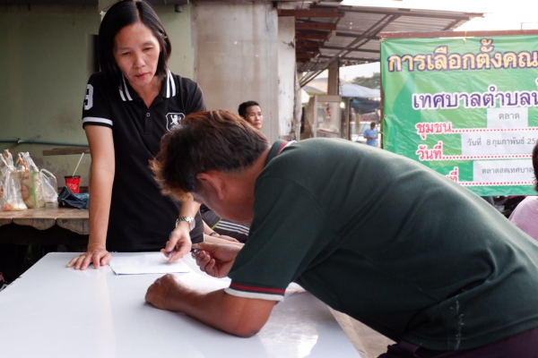การประชุมคัดเลือกคณะกรรมการและประธานชุมชนตลาด เมื่อวันที่ 8 กุมภาพันธ์ 2560 เวลา 18.00 น. ณ ตลาดสดท่าเสา
