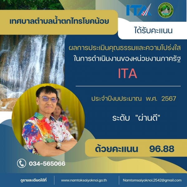 เทศบาลตำบลน้ำตกไทรโยคน้อย ได้รับการประเมินคุณธรรมและความโปร่งใส (ITA) จากสำนักงานป้องกันและปราบปรามการทุจริตแห่งชาติ (ป.ป.ช.) ในระดับ “ผ่านดี”
