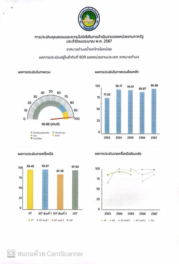ซึ่งเทศบาลตำบลน้ำตกไทรโยคน้อยได้คะแนน ประเมินคุณธรรมและความโปร่งใสในการดำเนินงานของ อปท. ประจำปี 2567 ได้คะแนน 96.88 คะแนน (ผ่านดี)