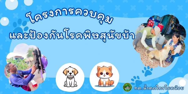 งานสาธารณสุข สำนักปลัดเทศบาล เทศบาลตำบลน้ำตกไทรโยคน้อย จัดทำโครงการป้องกันและควบคุมโรคพิษสุนัขบ้า ประจำปีงบประมาณ 2568 โดยจัดหน่วยบริการเคลื่อนที่ฉีดวัคซีนป้องกันโรคพิษสุนัขบ้าให้กับสุนัขและแมว ภายในเขตเทศบาล ทั้ง 6 ชุมชน เพื่อส่งเสริมให้ประชาชนมีส่วนร่วมในการรับผิดชอบดูแลสัตว์เลี้ยง สร้างภูมิคุ้มกันต่อสุนัขและแมว ป้องกันโรคจากสัตว์สู่คน รวมทั้งป้องกันและควบคุมการระบาดของโรคพิษสุนัขบ้าเพื่อความปลอดภัยของประชาชน