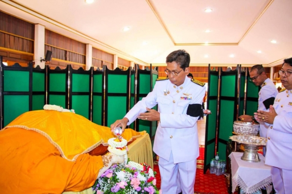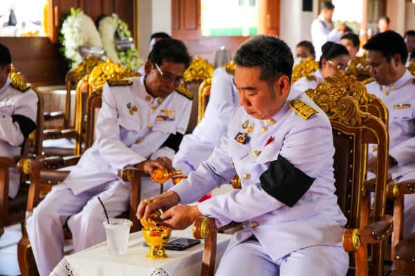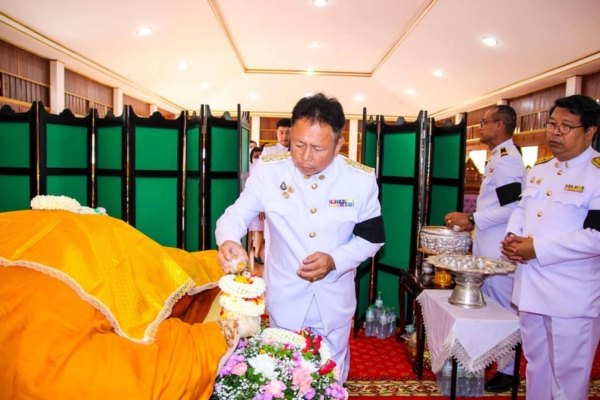 ร่วมพิธีสรงน้ำศพและพิธีพระราชทานน้ำหลวงสรงศพ พระครูกาญจนกิจธำรง อดีตรองเจ้าคณะอำเภอไทรโยค และอดีตเจ้าอาวาสวัดพุพง