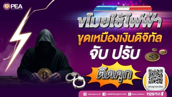 PEA เตือนละเมิดการใช้ไฟฟ้า ขุดเหรียญบิตคอยน์ผิดกฎหมายทั้งทางแพ่งและทางอาญา
