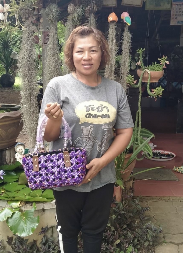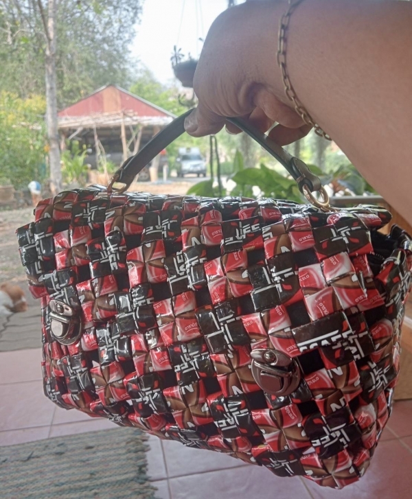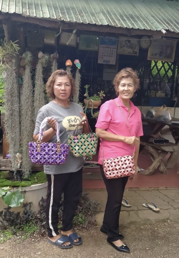 การสร้างอาชีพและเพิ่มรายได้ให้กับประชาชนในท้องถิ่นผ่านการเพิ่มมูลค่าจากขยะ (Upcycling Waste to Wealth) โดยทำการสร้างผลิตภัณฑ์กระเป๋าจากซองกาแฟ