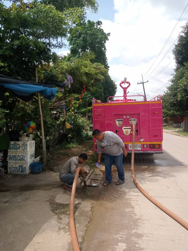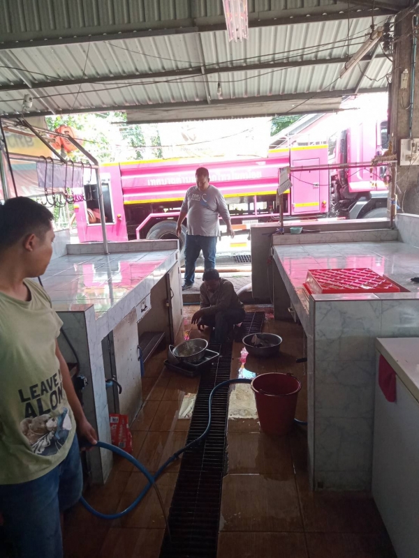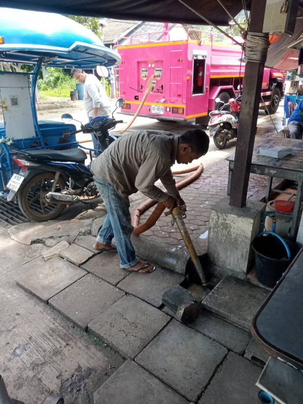 งานป้องกันและบรรเทาสาธารณภัยออกปฏิบัติงานล้างทำความสะอาดท่อระบายน้ำ