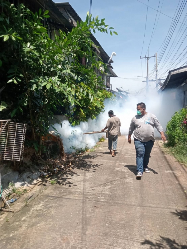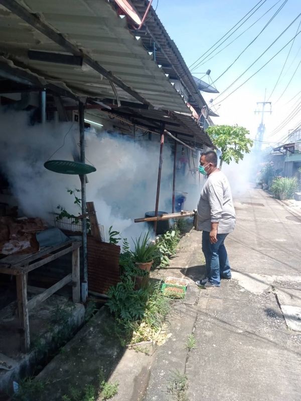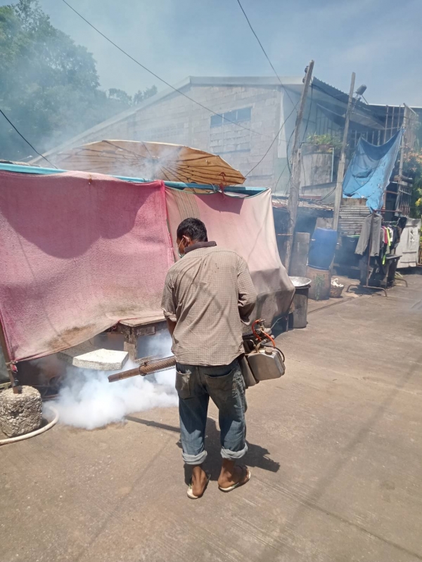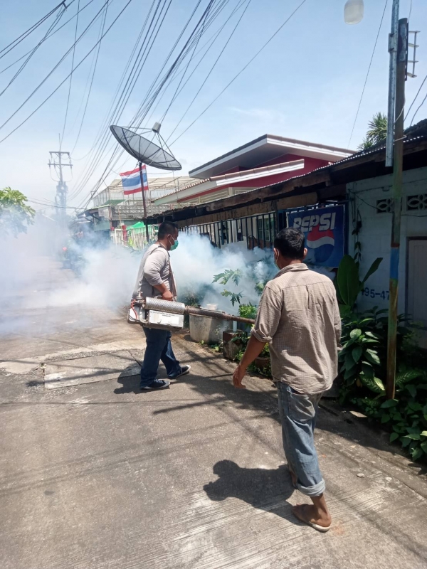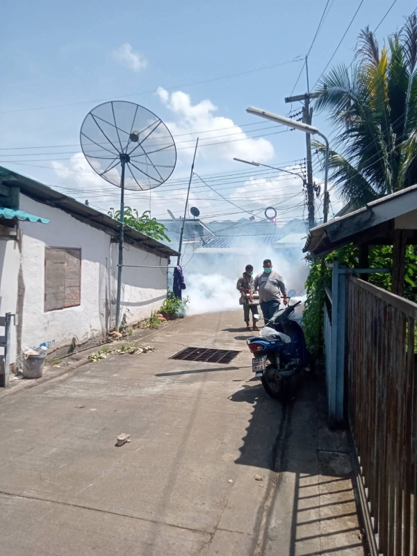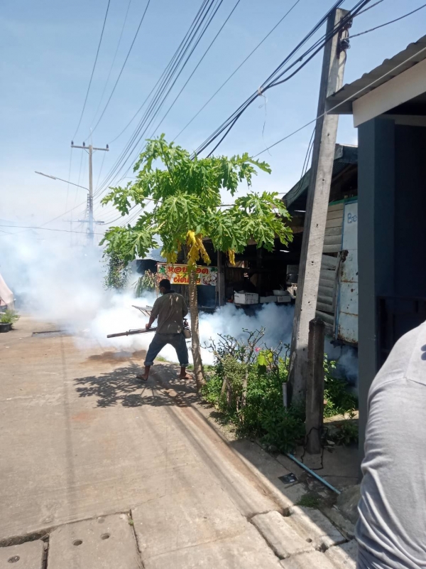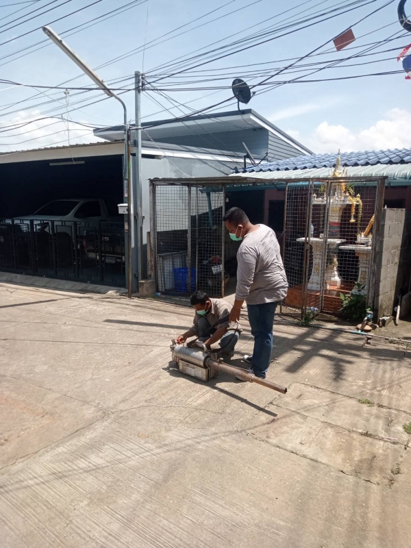 งานป้องกันและบรรเทาสาธารณภัย เทศบาลตำบลน้ำตกไทรโยคน้อย ออกฉีดพ่นหมอกควัน บริเวณหน้าน้ำตกไทรโยคน้อย เพื่อควบคุมและป้องกันโรคติดต่อที่มียุงเป็นพาหะ