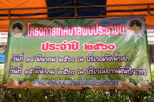 เทศบาลตำบลน้ำตกไทรโยคน้อย ร่วมกับ รพ.สต.ท่าเสาและ อสม. ในเขตเทศบาลฯ ร่วม "โครงการเทศบาลพบประชาชน ประจำปี 2560" เพื่อให้บริการนอกสถานที่แก่ประชาชนในเขตเทศบาลฯ อย่างทั่วถึง โดยมีกิจกรรมให้บริการประชาชน เช่น การตรวจสุขภาพเบื้องต้น, การรับชำระภาษี, ค่าธรรมเนียม, ค่าน้ำประปา, การรับลงทะเบียนเด็กแรกเกิด, การฉีดวัคซีนพิษสุนัขบ้า, การรับเรื่องร้องเรียนร้องทุกข์ ฯลฯ พร้อมมอบชุด "ถังขยะคัดแยกเคลื่อนที่..อยู่ดีมีสุข" เพื่อส่งเสริมการคัดแยกขยะ (ขยะเป็น 0)แก่คณะกรรมการชุมชนในเขตฯ ระหว่างวันที่ 14-15 มี.ค. 60 ณ วัดน้ำตก และลานมันปิยะพร