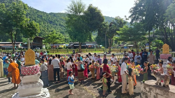 เทศบาลตำบลน้ำตกไทรโยคน้อย ร่วมทำบุญตักบาตรเทโวโรหณะ เนื่องในวันออกพรรษา ประจำปี 2568
