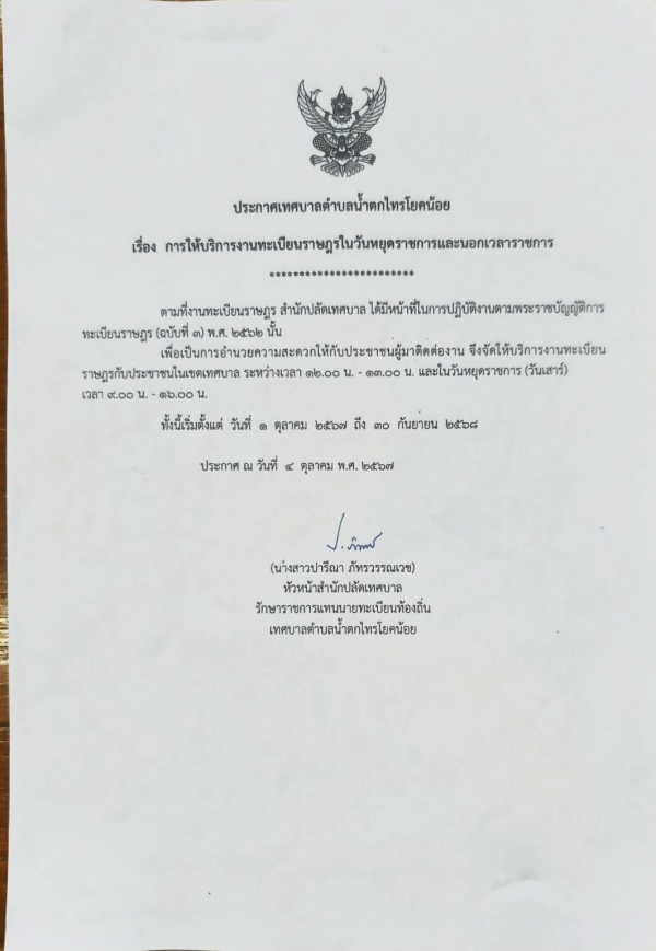 การให้บริการงานทะเบียนราษฎรในวันหยุดราชการและนอกเวลาราชการ