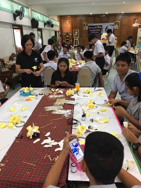 28 มิ.ย.60 เทศบาลตำบลน้ำตกไทรโยคน้อย จัดอบรม "โครงการฝึกอบรมอาชีพให้แก่ประชาชน ประจำปี 2560" โดยจัดอบรมการทำดอกไม้จันทน์ ตาม "โครงการจิตอาสาดารารัตน์ ร่วมใจถวายพ่อหลวง" รุ่นที่ 1 ให้แก่นักเรียน ณ โรงเรียนไทรโยคน้อยวิทยา อ.ไทรโยค จ.กาญจนบุรี