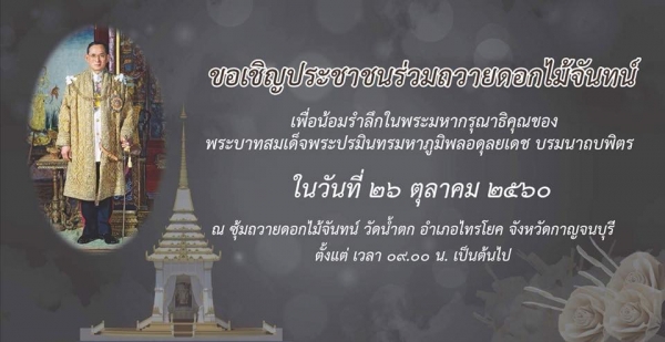 ขอเชิญร่วมพิธีถวายดอกไม้จันทน์ นายหลวงรัชกาลที่ ๙