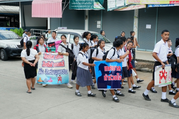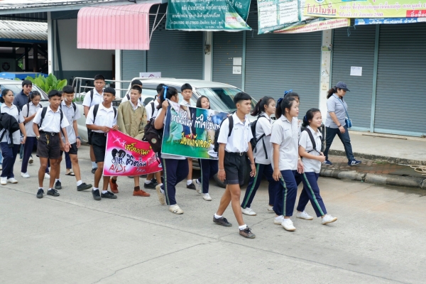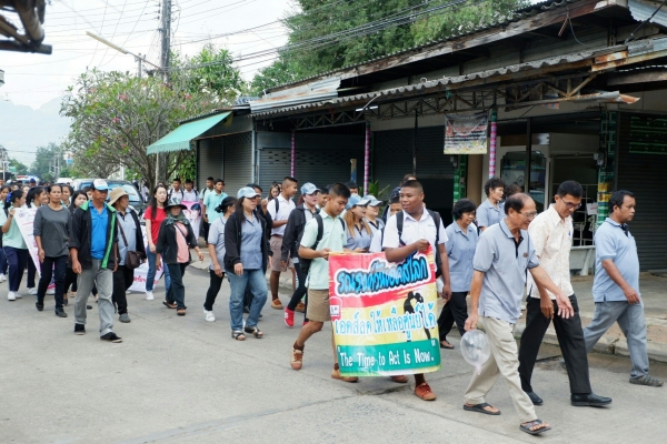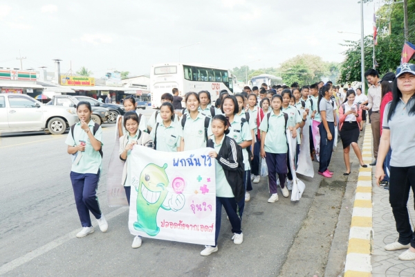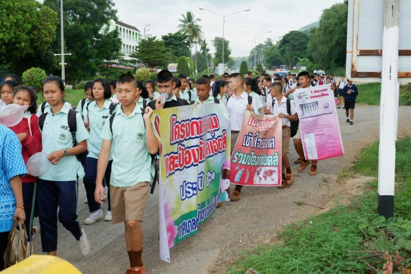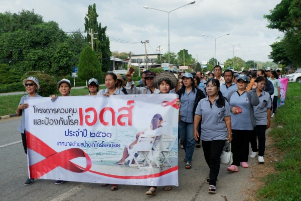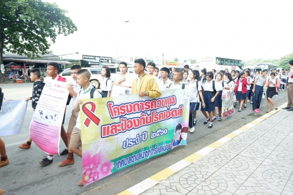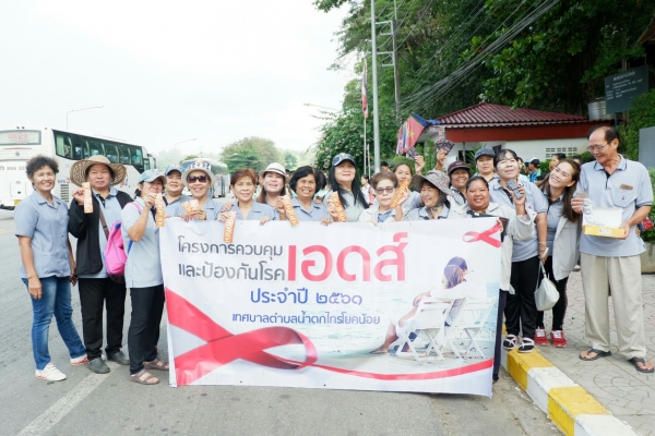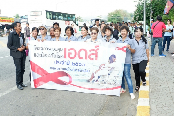 เวลา 08.30 น. เทศบาลตำบลน้ำตกไทรโยคน้อย ร่วมกับ รพ.สต.ท่าเสา กลุ่ม อสม. โรงเรียนไทรโยคน้อยวิทยา ร่วมเดินรณรงค์วันเอดส์โลก ในวันที่ 1 ธันวาคม 2560