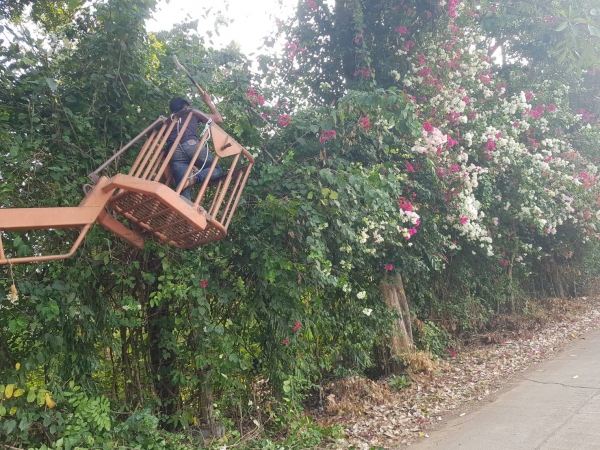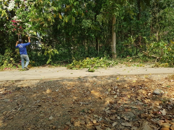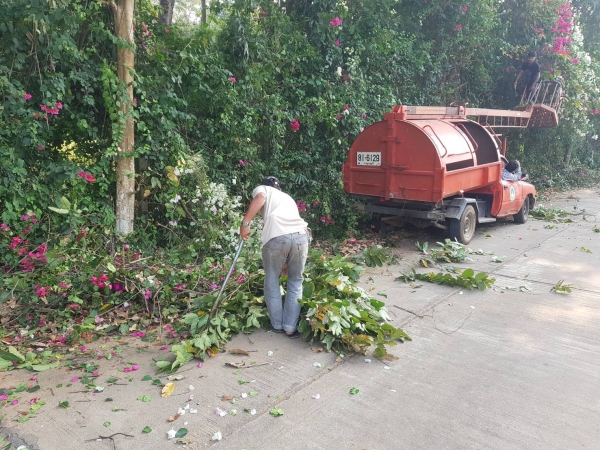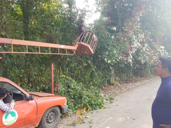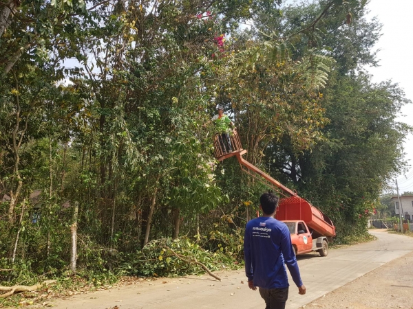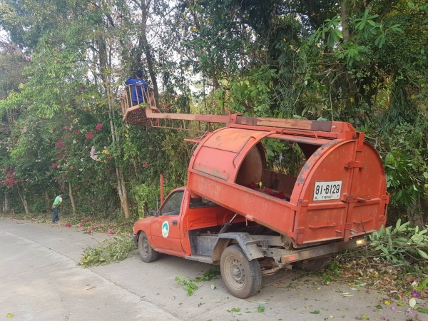 กองช่างสำรวจ ตัดต้นไม้ กิ่งไม้ สองข้างทาง ที่ยื่นล้ำออกมาบนถนนสาธารณะ