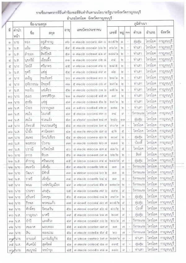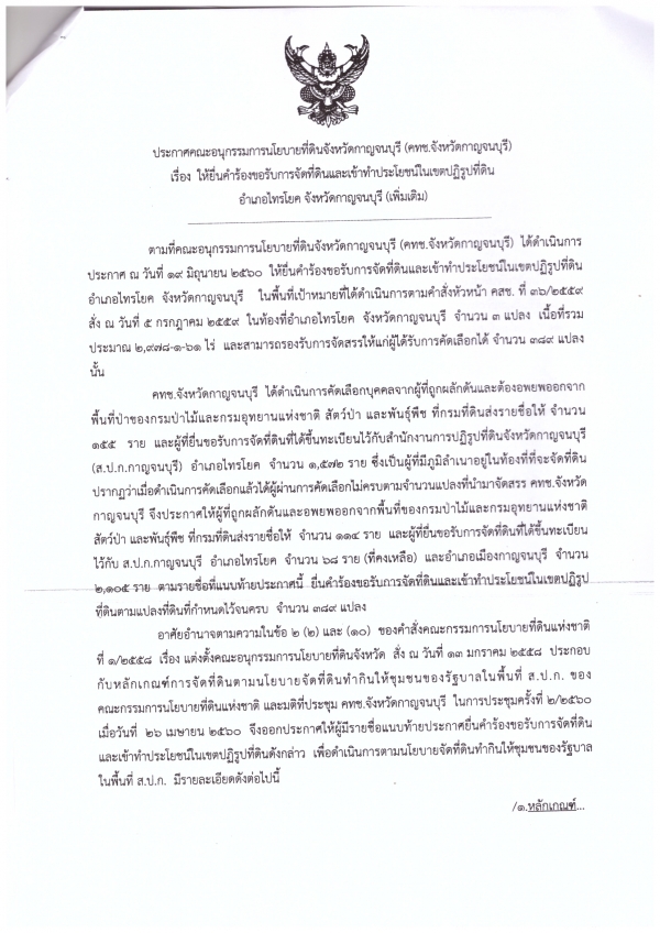 สำนักงานปฏิรูปที่ดินจังหวัดกาญจนบุรี" แจ้งประชาสัมพันธ์โครงการจัดที่ดินทำกินให้ชุมชนตามนโยบายรัฐบาล