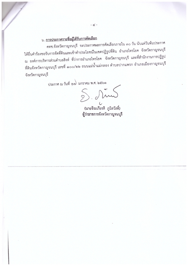 ข่าวประชาสัมพันธ์จาก "สำนักงานปฏิรูปที่ดินจังหวัดกาญจนบุรี" แจ้งประชาสัมพันธ์โครงการจัดที่ดินทำกินให้ชุมชนตามนโยบายรัฐบาล โดยผู้มีรายชื่อตามประกาศยื่นคำร้องขอรับการจัดที่ดินต่อพนักงานเจ้าหน้าที่ ได้ในระหว่างวันที่ 1 กุมภาพันธ์ 2561 ถึงวันที่ 2 มีนาคม 2561 เวลา 08.30 - 16.30 น. ณ สำนักงานการปฏิรูปที่ดินจังหวัดกาญจนบุรี ในวันราชการ หากผู้มีรายชื่อไม่ยื่นคำขอเข้าทำประโยชน์ภายในกำหนดดังกล่าวจะถือว่าสละสิทธิการขอรับการจัดที่ดิน รายละเอียดเพิ่มเติม ตรวจสอบรายชื่อได้ตามเอกสารนี้