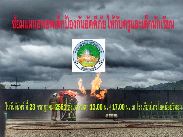แจ้งประชาสัมพันธ์การซักซ้อมแผนอพยพเด็กป้องกันอัคคีภัย ให้กับครูและเด็กนักเรียนโรงเรียนไทรโยคน้อยวิทยา