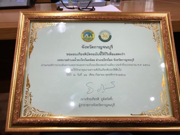 รับมอบรางวัลองค์กรปกครองส่วนท้องถิ่นที่ผ่านเกณฑ์ประเมินความสะอาดและความเป็นระเบียบเรียบร้อยของบ้านเมือง ประจำปีงบประมาณ 2561