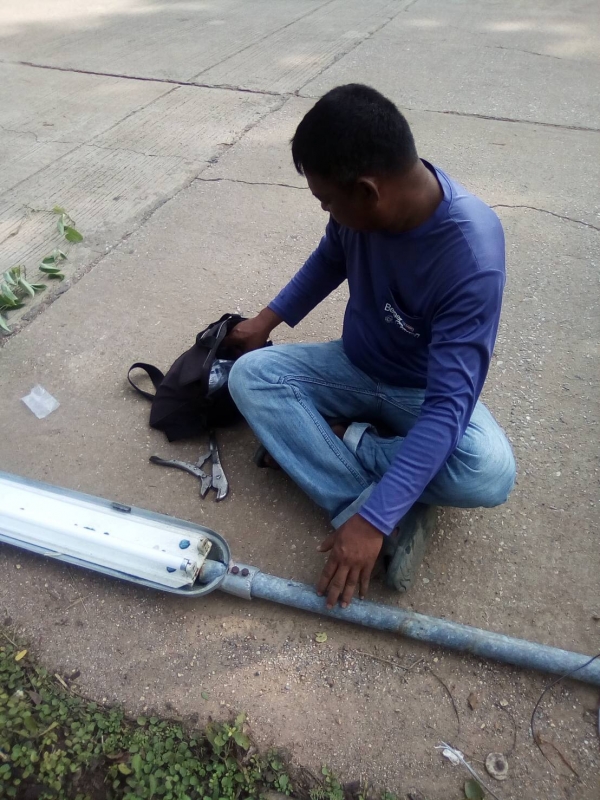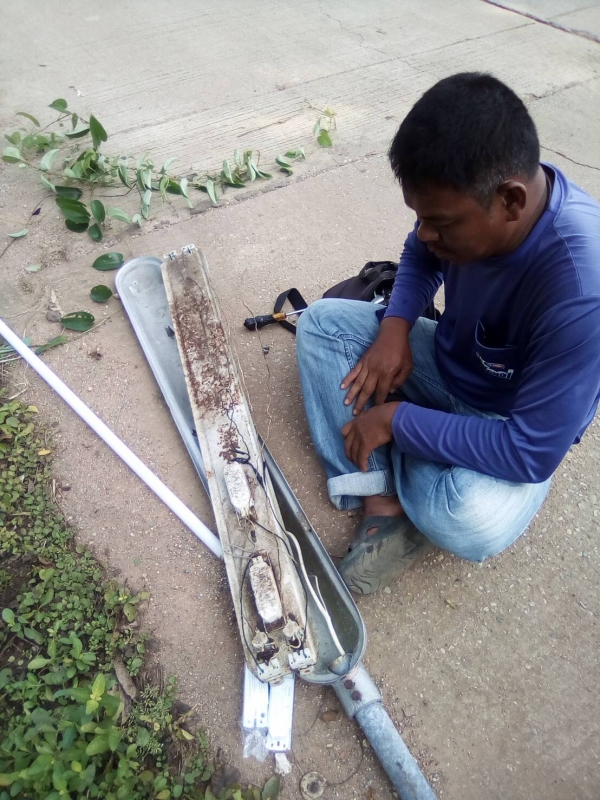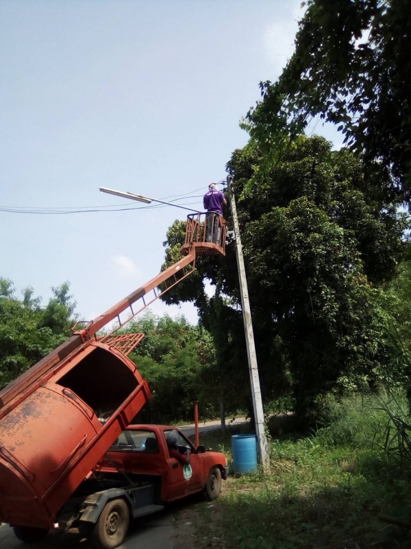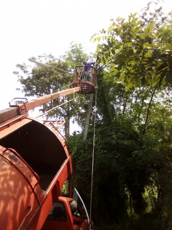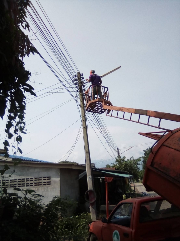 10/10/2561 เวลา 13.30 น. เจ้าหน้ากองช่างดำเนินการซ่อมแซมไฟฟ้าสาธารณะ บริเวณถนนเทศบาล 3 (หลังอนามัย)