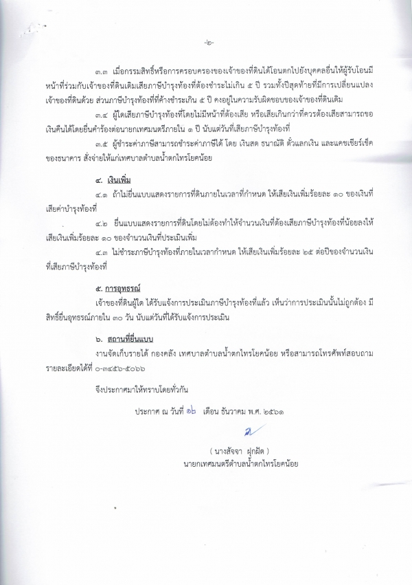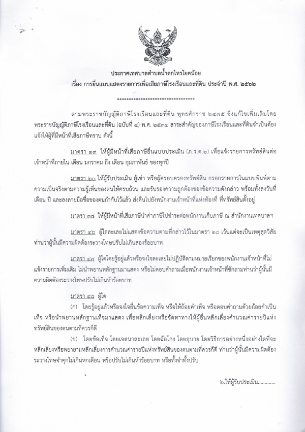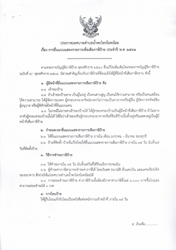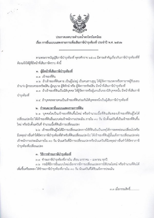 * ภาษีบำรุงท้องที่ 2 มกราคม ถึง 30 เมษายน 2562