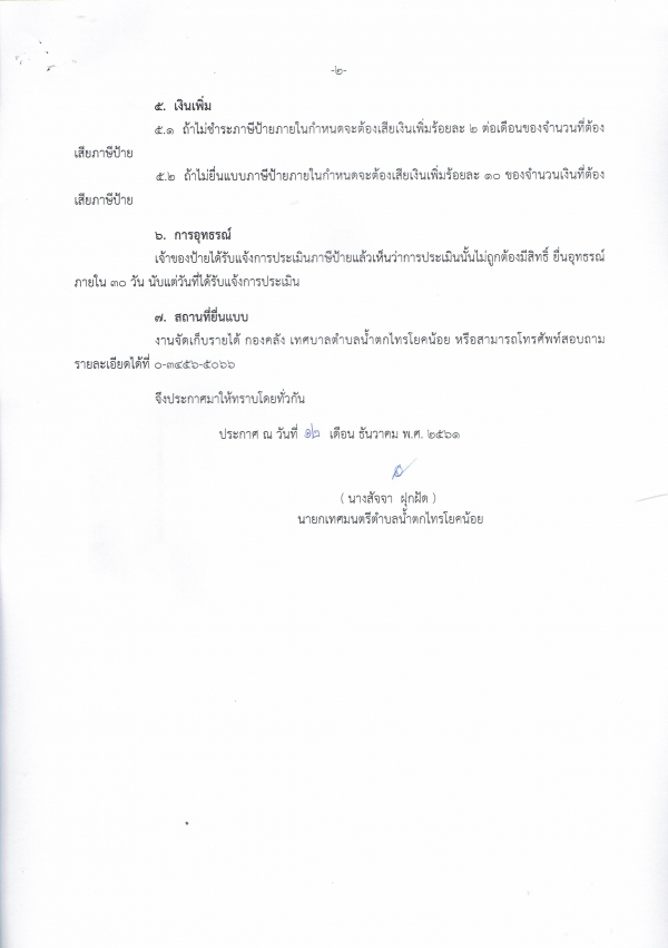 * ภาษีป้าย 2 มกราคม ถึง 31 มีนาคม 2562