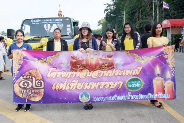 12 กรกฎาคม 2562 เวลา 07.30 น. เทศบาลตำบลน้ำตกไทรโยคน้อย ร่วมกับคณะครู นักเรียนโรงเรียนอนุบาลไทรโยค โรงเรียนไทรโยคน้อยวิทยา ชุมชนทั้ง 6 ชุมชน ร่วมเดินแห่เทียนพรรษา เพื่อนำเทียนถวาย ณ วัดน้ำตก วัดเกาะเจริญสุขาราม วัดท่าเสา เพื่อสืบสานวัฒนธรรมประเพณีอันดีของท้องถิ่นเนื่องในเทศกาลเข้าพรรษา