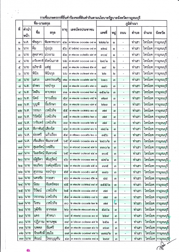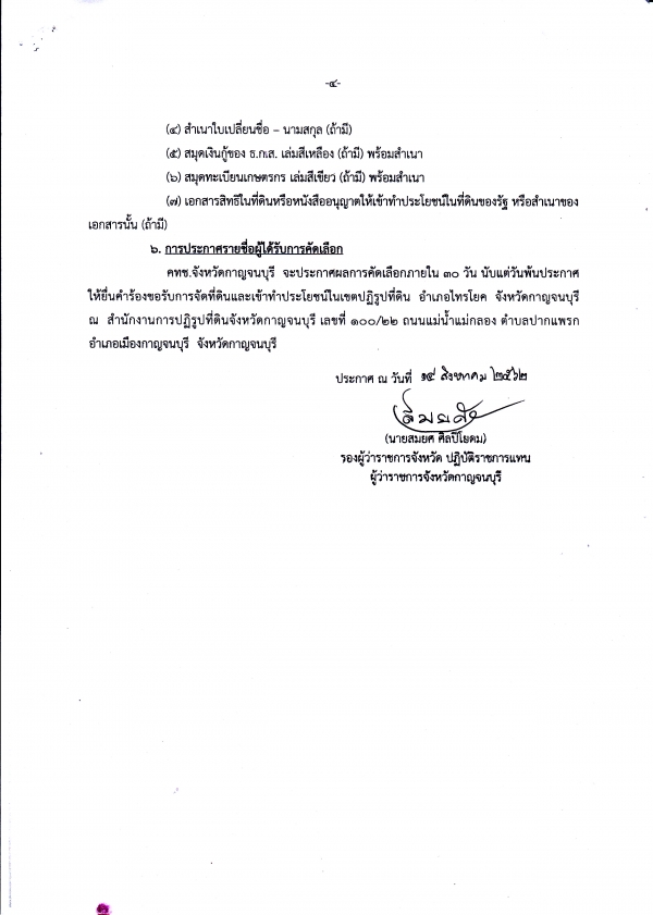 ขอความร่วมมือปิดประกาศคณะอนุกรรมการนโยบายที่ดินจังหวัดกาญจนบุรี