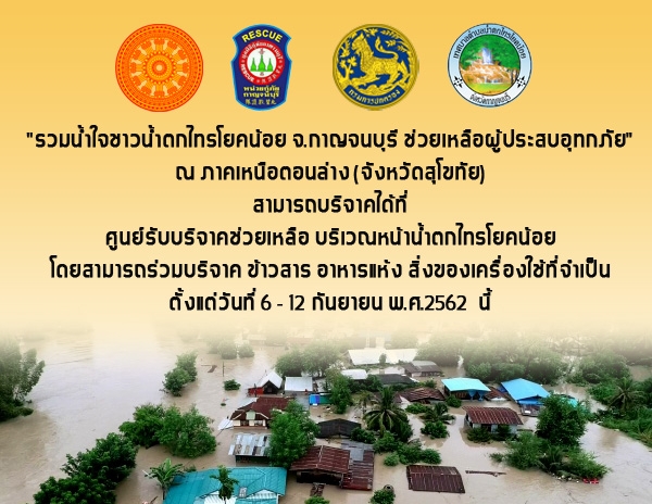 ขอเชิญประชาชน "รวมน้ำใจชาวน้ำตกไทรโยคน้อย จ. กาญจนบุรี ช่วยเหลือผู้ประสบอุทกภัย"