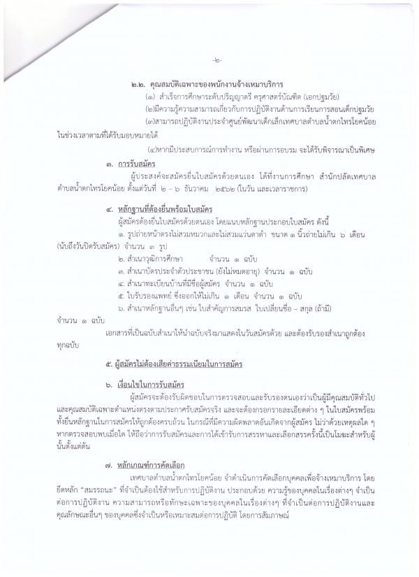 รับสมัครบุคคลทั่วไปเพื่อคัดเลือกเป็นพนักงานจ้างเหมาบริการ ประจำปีงบประมาณ 2563 (ปฏิบัติหน้าที่ผู้ดูแลเด็กเล็ก)