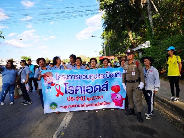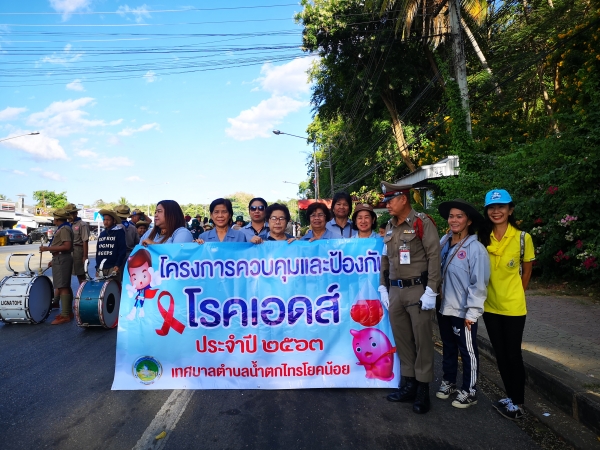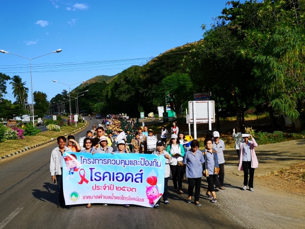 28 พฤศจิกายน 2562 เวลา 08.00 น. เทศบาลตำบลน้ำตกไทรโยคน้อย ร่วมกับโรงเรียนอนุบาลไทรโยค โรงเรียนไทรโยคน้อยวิทยา โรงพยาบาลส่งเสริมสุขภาพตำบลบ้านท่าเสา และกลุ่ม อสม. บ้านท่าเสา ออกเดินรณรงค์ แจกแผ่นพับให้ความรู้เกี่ยวรู้เรื่องโรคเอดส์และโรคติดต่อทางเพศสัมพันธ์ เนื่องในวันเอดส์โลก สำหร้บคําขวัญวันเอดส์โลก 1 ธ.ค. 2562 “รวมพลังชุมชน ยุติเอดส์”