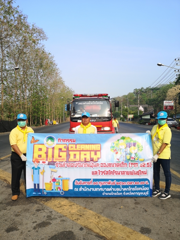 18/02/2563 นายไพโรจน์ ผ่องเกษม รองนายกเทศมนตรีเทศบาลน้ำตกไทรโยคน้อย เป็นประธานในพิธีเปิด กิจกรรม Big Cleaning Day ร่วมใจลดปริมาณฝุ่นละอองขนาดเล็ก (PM 2.5) และไวรัสโคโรน่าสายพันธุ์ใหม่ ร่วมด้วยผู้อำนวยการช่าง หัวหน้าสำนักปลัดเทศบาล พนักงานและพนักงานจ้างพร้อมทั้ง อปพร. เทศบาลฯ ณ บริเวณหน้าน้ำตกไทรโยคน้อย