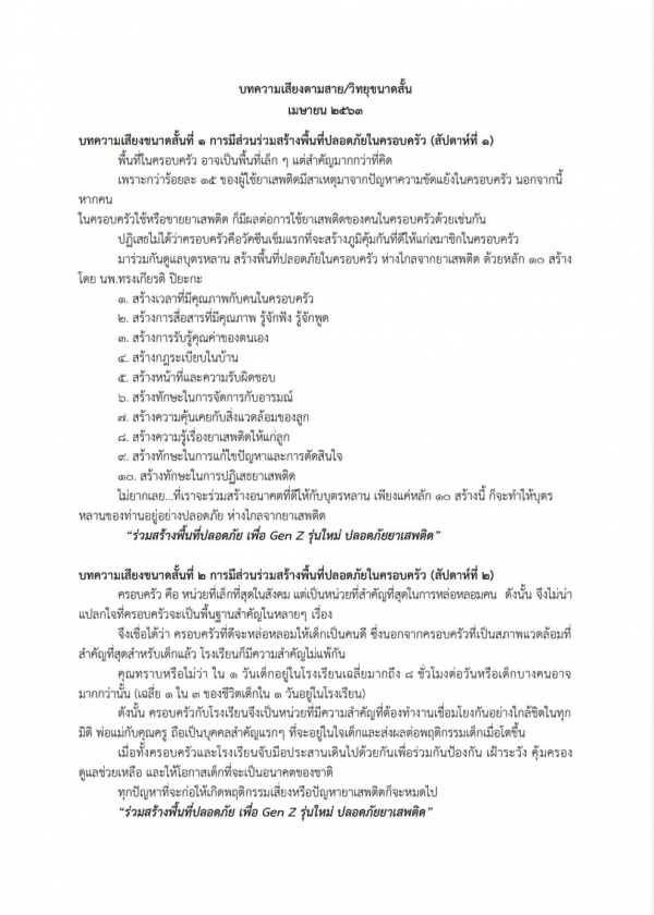 สำนักงาน ป.ป.ส. แจ้งประชาสัมพันธ์เนื้อหาสร้างการรับรู้และภูมิคุ้มกันยาเสพติด ประจำเดือนเมษายน 63 สำหรับเผยแพร่ให้ประชาชนได้รับทราบ