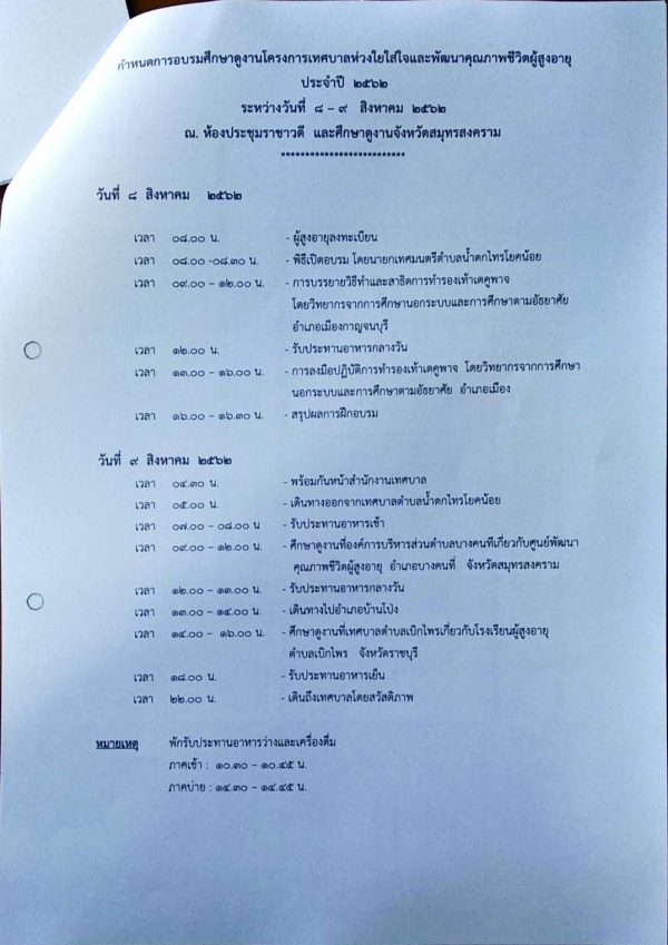 โครงการเทศบาลห่วงใยใส่ใจและพัฒนาคุณภาพชีวิตผู้สูงอายุ ประจำปีงบประมาณ พ.ศ.2562