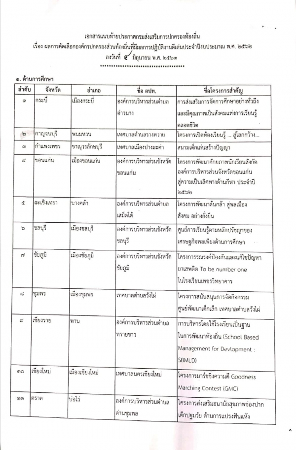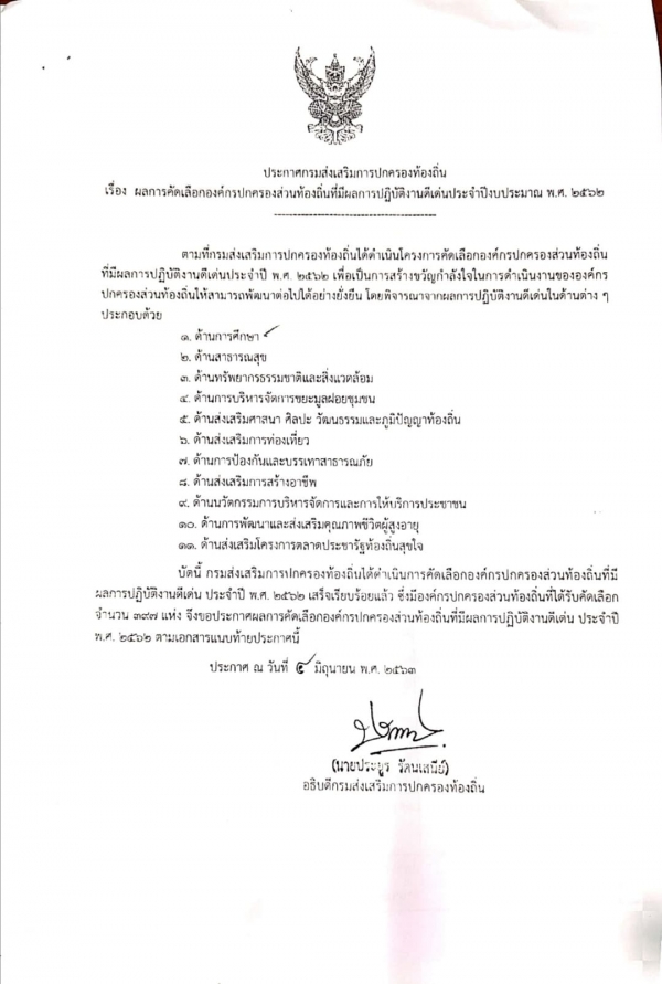 ผลการคัดเลือกองค์กรปกครองส่วนท้องถิ่นที่มีผลการปฎิบัติงานดีเด่น ประจำปีงบประมาณ พ.ศ.2562