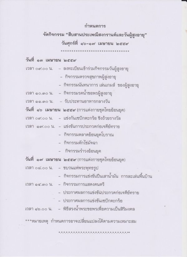 แจ้งประชาสัมพันธ์กำหนดการจัดกิจกรรม "สืบสานประเพณีสงกรานต์และวันผู้สูงอายุ"