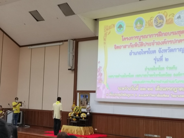 อำเภอไทรโยค ร่วมกับ ทต.น้ำตกไทรโยคน้อย ทต.ไทรโยค อบต.ท่าเสา และอบต.วังกระแจะ ได้จัดทำโครงการบูรณาการฝึกอบรมหลักสูตรชุดปฎิบัติการจิตอาสาภัยพิบัติประจำองค์กรปกครองส่วนท้องถิ่น อ.ไทรโยค จ.กาญจนบุรี รุ่นที่ 2 ขึ้นระหว่างวันที่ 22-24 กรกฎาคม 2563 ณ ห้องประชุมมหาวิทยาลัยมหิดล วิทยาเขตกาญจนบุรี จังหวัดกาญจนบุรี