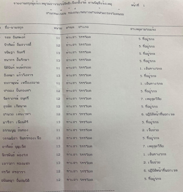 รายงานบัญชีผู้แจ้งเหตุไม่อาจไปใช้สิทธิเลือกตั้งได้