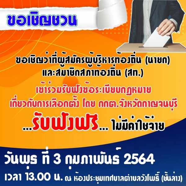 เชิญชวนว่าที่ผู้สมัคร เข้าร่วมรับฟังข้อระเบียบกฎหมายเกี่ยวกับการเลือกตั้ง