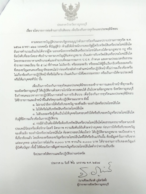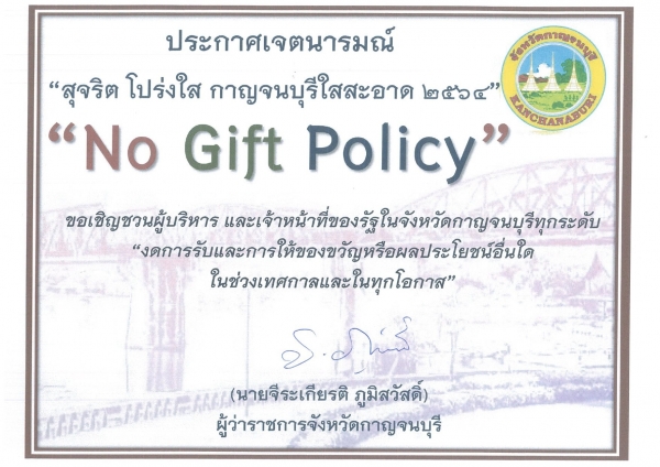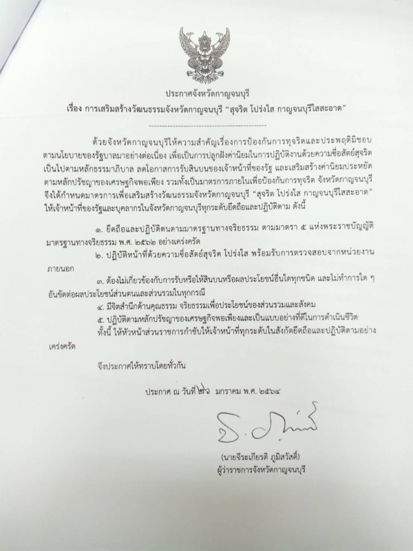 การประกาศเจตนารมณ์ "สุจริต โปร่งใส กาญจนบุรีใสสะอาด 2564" ของจังหวัดกาญจนบุรี