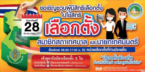 ขอเชิญชวนผู้มีสิทธิเลือกตั้งทุกท่านออกไปใช้สิทธิลงคะแนนเลือกตั้งท้องถิ่น