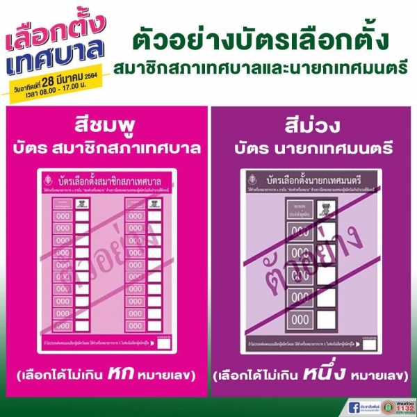 บัตรสีชมพูเลือก : สมาชิกสภาเทศบาล (เลือกได้ไม่เกิน 6 หมายเลข)