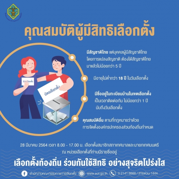 วันอาทิตย์ที่ 28 มีนาคม 2564 ณ หน่วยเลือกตั้งที่ท่านมีชื่ออยู่