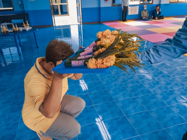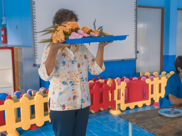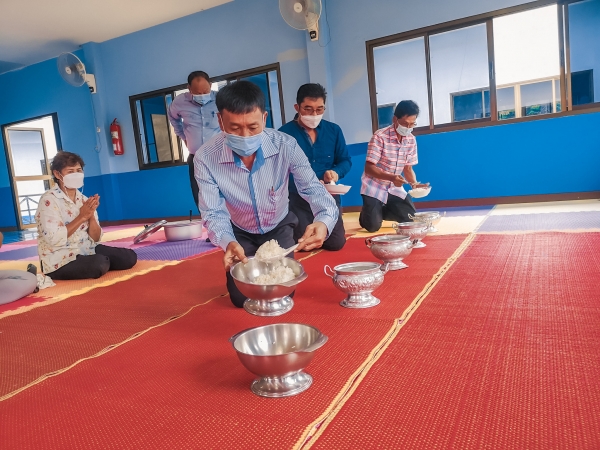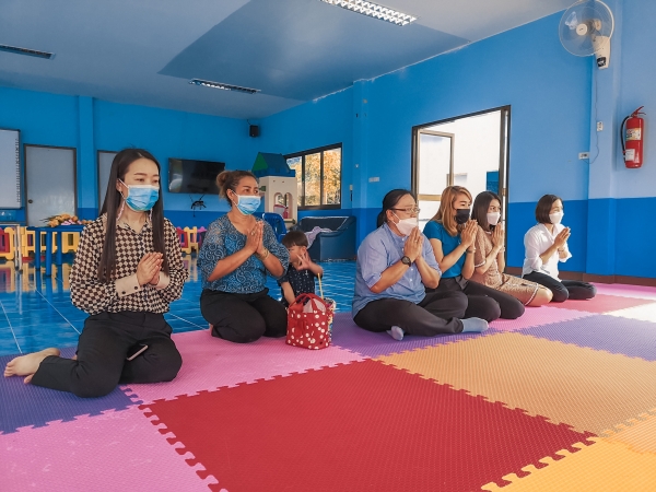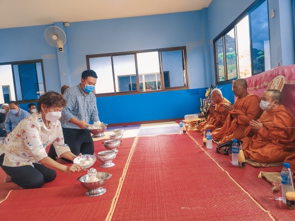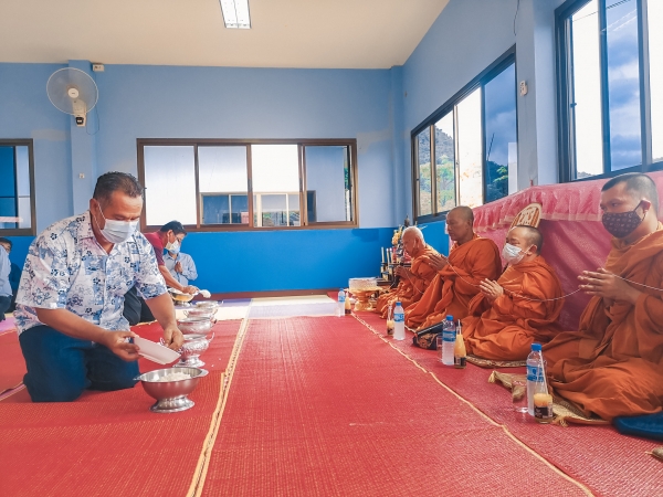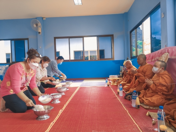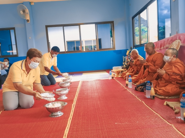 พิธีตักบาตรและถวายภัตตาหารเพล แด่พระภิกษุสงฆ์ จำนวน 9 รูป ณ ศูนยเด็กเล็กฯ